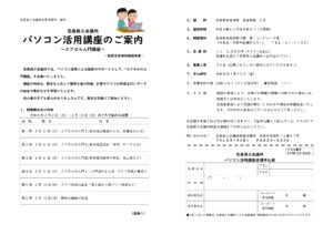 講座の内容は、数字を入力して簡単な表の作成、計算やグラフの作成を行いデータの抽出や集計などを学習いたします。