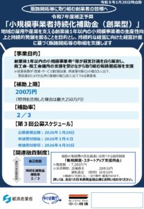 1月28日(水)に第19回一般型・第3回創業型小規模事業者持続化補助金の公募要領が公開されました。