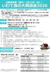 県内最大級の食の商談会である「いわて食の大商談会2026」が令和8年6月16日(火曜)に開催されます。