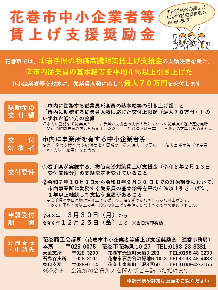 ※花巻市中小企業者等賃上げ支援奨励金 リーフレットはこちらから